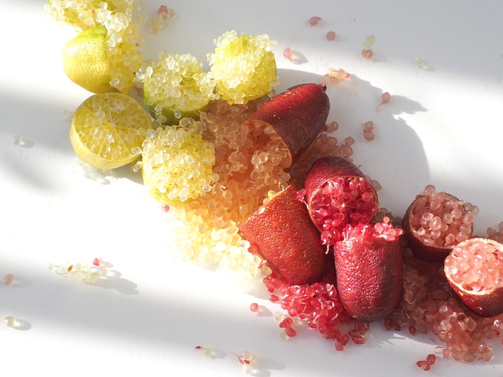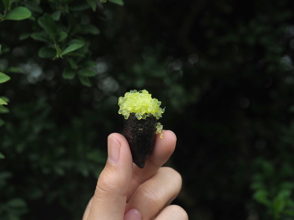 品種によって様々な果肉の色を持ち、その美しく鮮やかな見た目、ぷちぷちとはじける食感や個性的で心地よい柑橘の香りが人々を惹きつけ、新たな高級食材の一つとして世界中のシェフから注目を集めるようになりました。