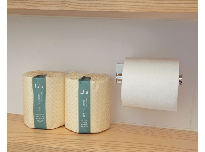 光に透ける和風柄の透かし模様のトイレットペーパーです。プリント柄とは異なる土佐和紙の伝統技術を用い、紙の重ね合わせで表現した美しさはギフトとしても選ばれています。