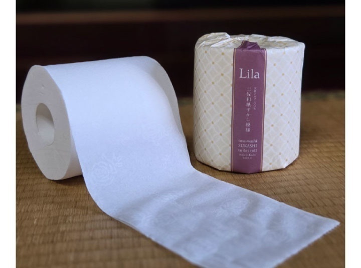 光に透ける和風柄の透かし模様のトイレットペーパーです。プリント柄とは異なる土佐和紙の伝統技術を用い、紙の重ね合わせで表現した美しさはギフトとしても選ばれています。