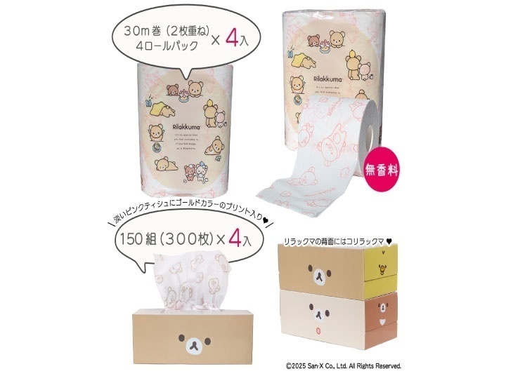 リラックマのトイレットペーパー4パック(16ロール)とボックスティッシュ4箱のギフトセットです。 ☆毎日使うティッシュは、ちょっとこだわって選びたい☆ 使うたび思わず笑顔になるかわいいプリント入り★ ふわふわで肌触りがやさしいのもポイント♪ ご自宅用はもちろん、お誕生日祝い、新築・お引越し祝い、季節のご挨拶などあらゆるシーンでご利用いただけます。 リラックマ好きの方への贈り物としていかがでしょうか。