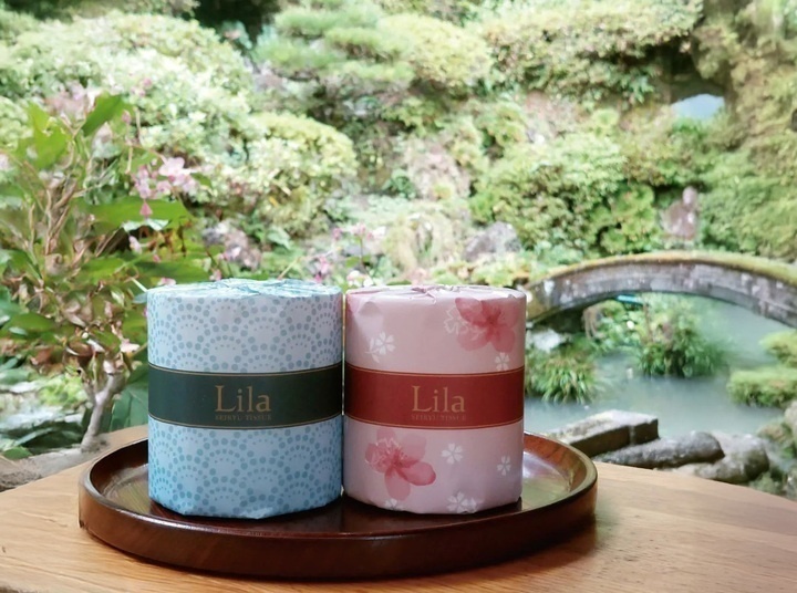 大阪万博やホテル等にも採用いただいているリラ:トイレットペーパー(シングル60m)(ダブル30m)を1ロールずつとソフトパックティッシュ(300枚)を2個詰め合わせたギフトセットです。