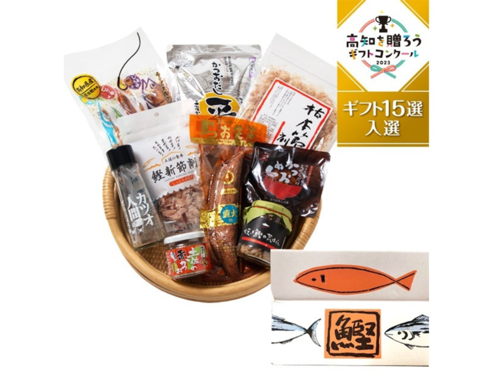 高知県主催の「⾼知を贈ろうギフトコンクール2023」の15選に入選した当店厳選、かつお尽くしのギフトセットです!