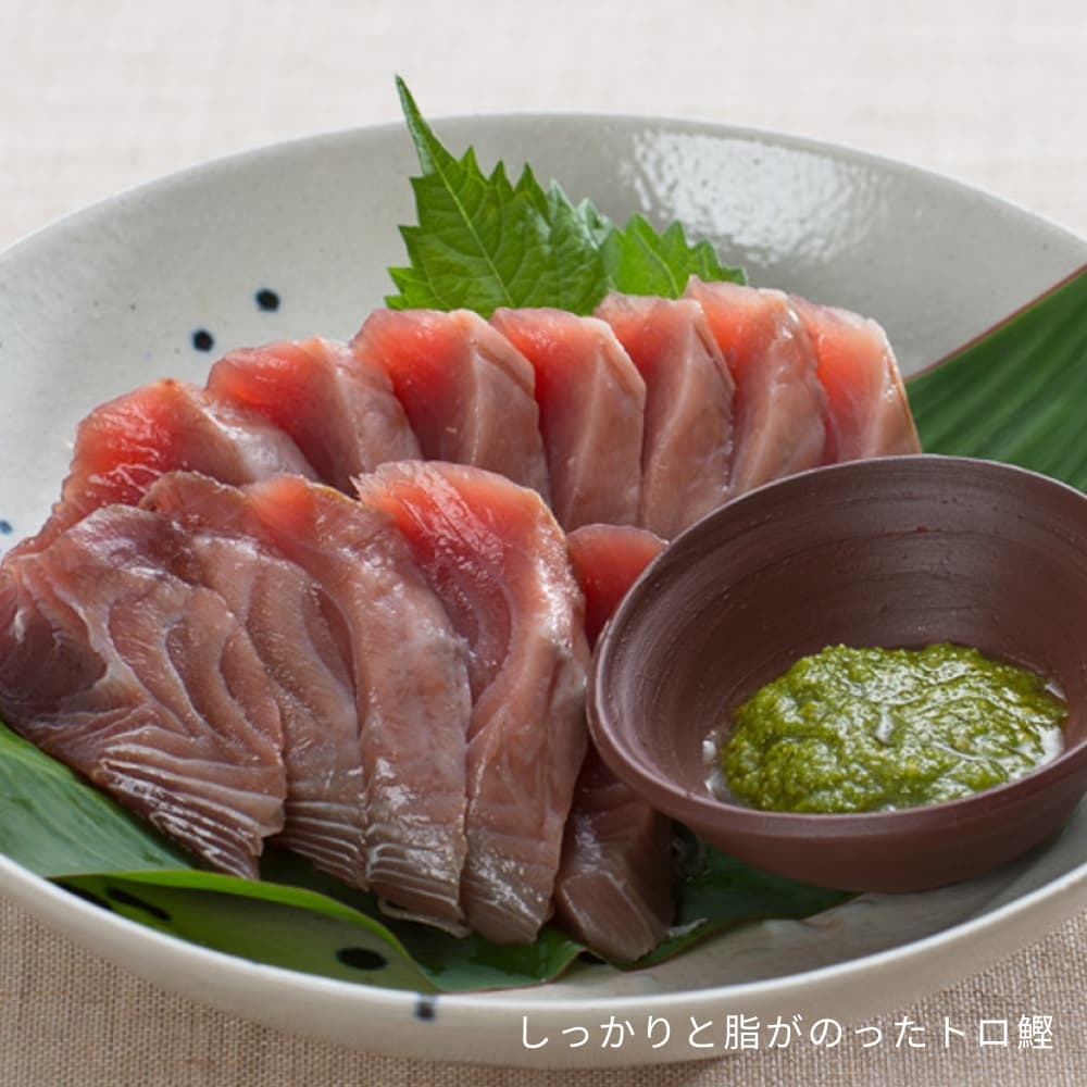 タタキと鯨、トロ鰹は解凍後お好きな厚さに切り、お皿に豪快に盛り付けてください。