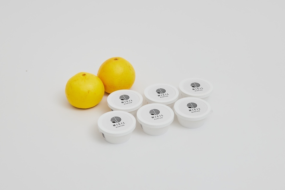 そして、文旦アイスに使用している果汁はエッセンシャルオイルを蒸留するために皮を剥いだ後の果実を活用。