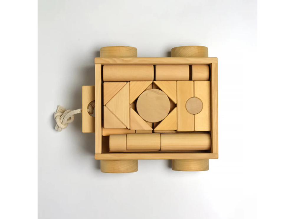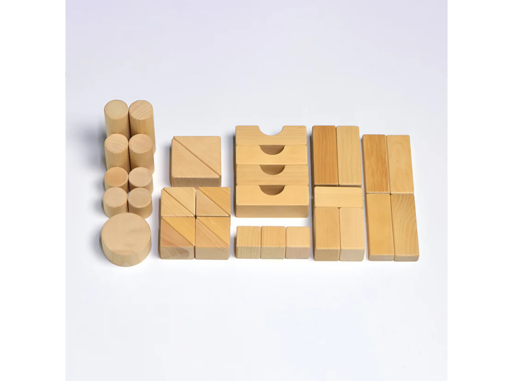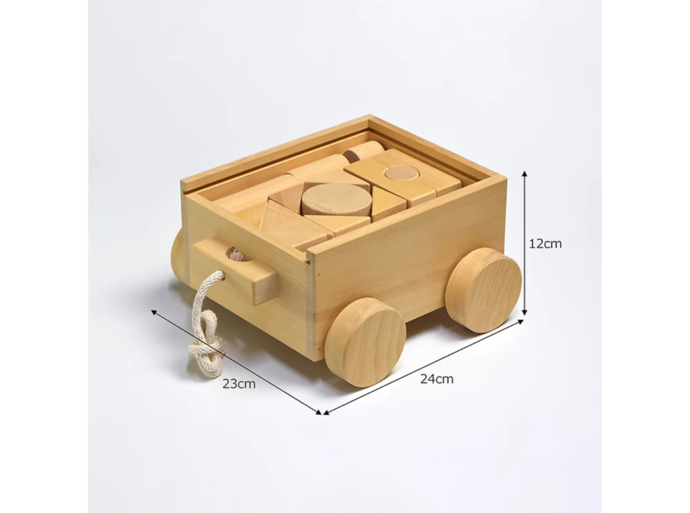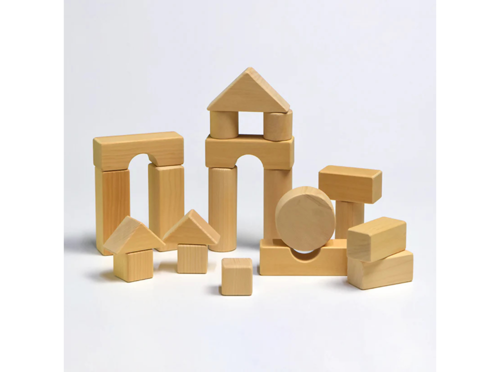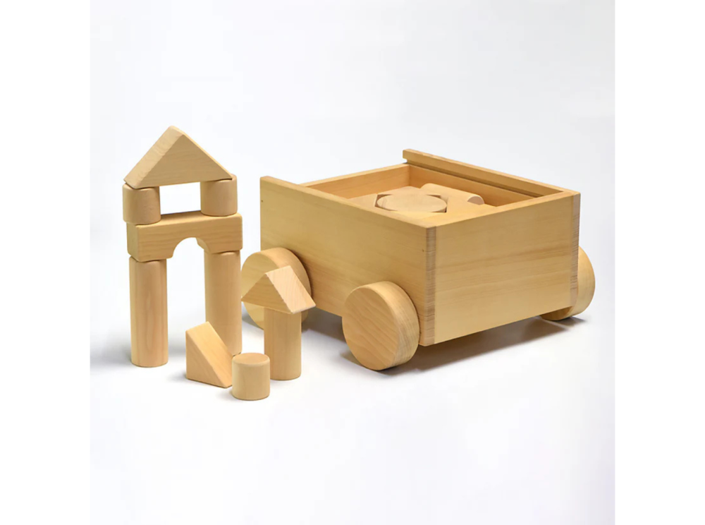 1歳前後から遊べますが、最初のうちは積み木遊びではなく、たたいて音を出したり、口にふくんだりして遊びます。 積み木も木箱もすべて無塗装・無添加。角はひとつひとつ手作業で削り、また飲み込めない大きさにつくっていますので、小さなお子さまにも安心です。