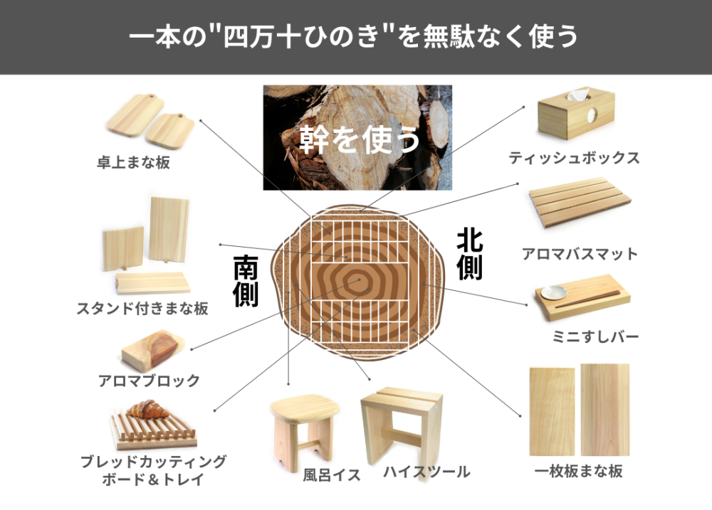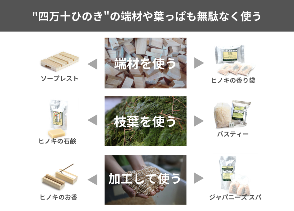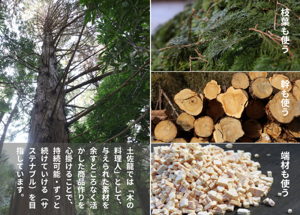 高知県の地元材である「四万十ひのき」の間伐材や除伐材、端材や葉っぱなどを主に活用した商品づくりをしています。 暮らしに役立ち、暮らしを明るく心地良くする商品の開発に日々務めています。