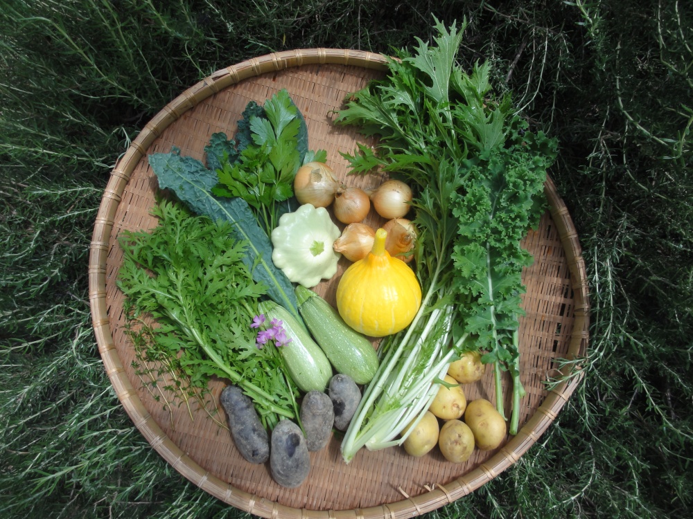 庭と呼ぶにふさわしい小さな圃場で、年間80種類ほどの野菜とハーブを、栽培期間中農薬・化学肥料不使用で栽培しています。