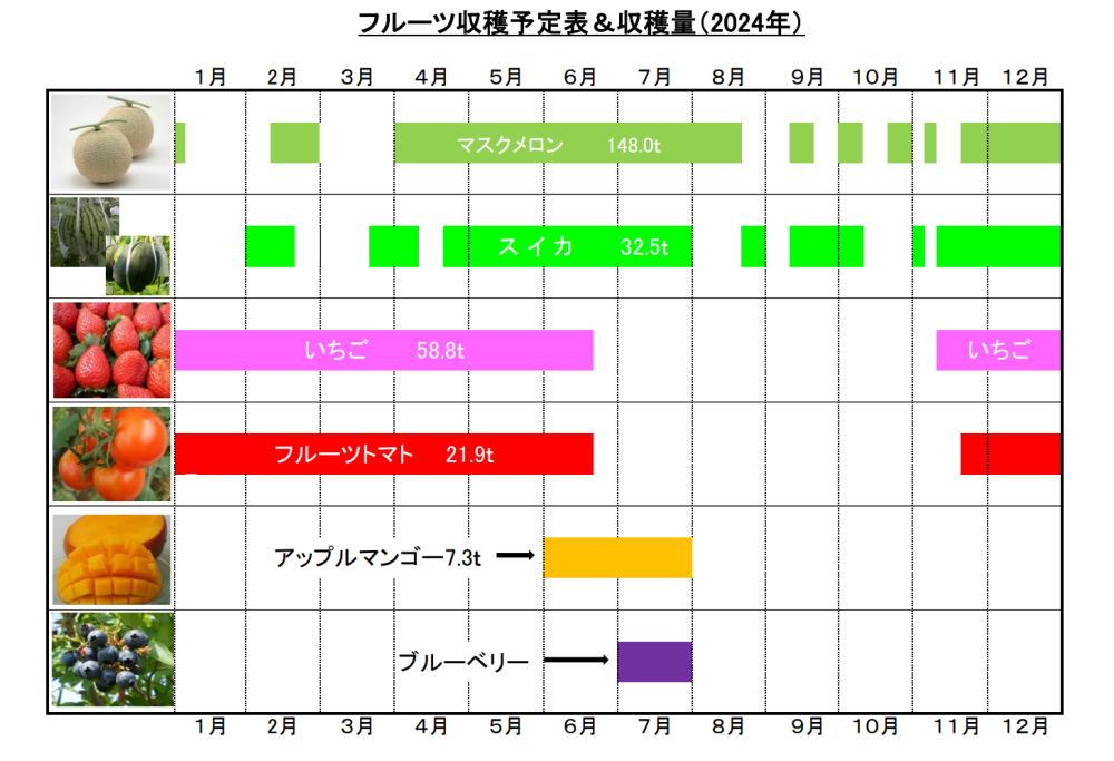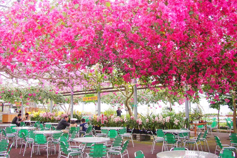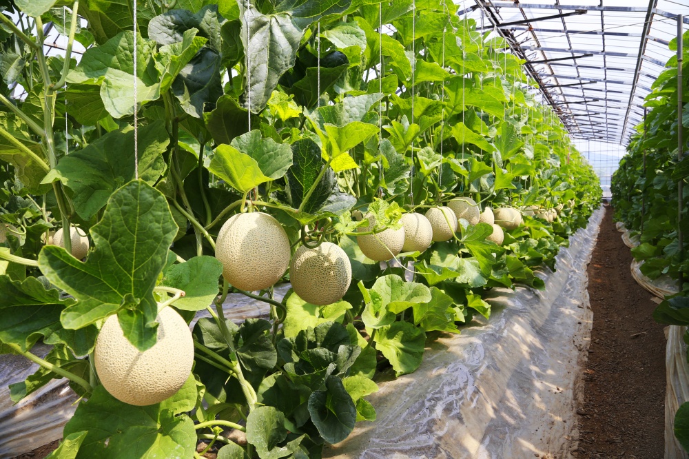 色とりどりに咲き誇る花々、吹き抜けるそよ風を受けながら、熱帯の花や木がしげるガーデンでは、楽園ムードにひたりながら、一年中スイカやメロンを味わえます。
