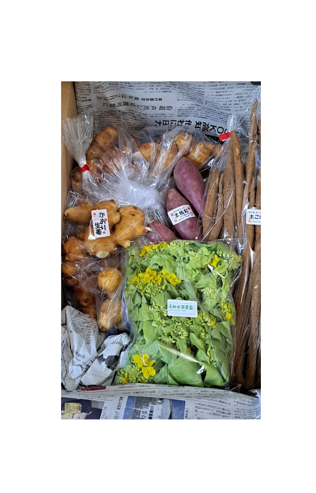 高知水田農園ベジフルMarket では、生姜と根菜と季節のとれたて旬野菜のお野菜セットの発送をしています。また、加工部門では販売できない傷や割れた生姜をきれいに調整して乾燥生姜を作り、高知生姜CHAI という、ジンジャーチャイの素を製造しています。生姜やお野菜と一緒にチャイもお送りできます。