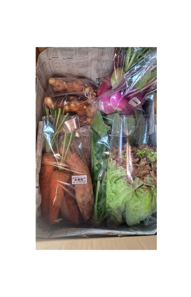 生姜栽培発祥の地いの町枝川の赤土畑で、生姜、じゃがいも、土佐紅さつまいも、セレベス里芋、土ごぼうをメインに季節のお野菜を栽培しています。