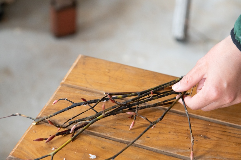 「黒文字茶」は林業を営む上で、作業中に安全性確保のために、やむをえず伐ることになるクロモジを活用できないかと、チップ状に粉砕し、天日干しで乾燥させました。