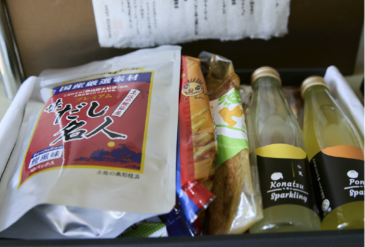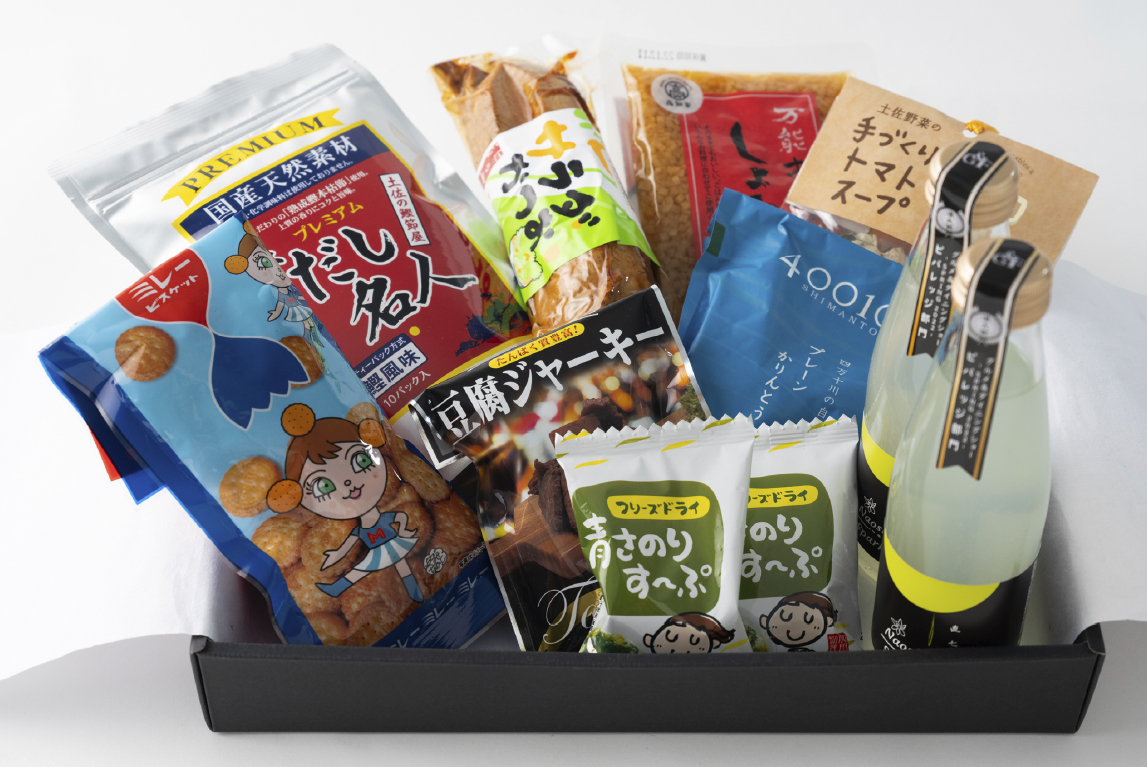 その思いと以前から考えていた高知の魅力を発信したいという気持ちが組み合わさり、地元生産者による食 品や加工品、調味料などがセットになった「土佐づつみギフトセット」が誕生しました。