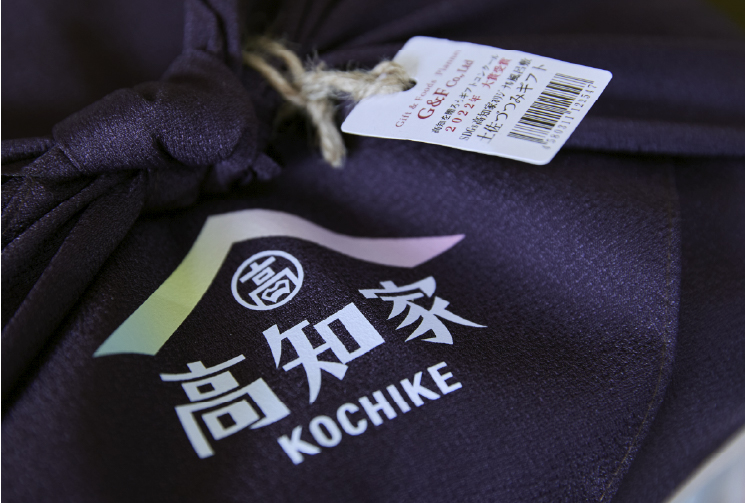 こちらのオリジナルギフト「土佐づつみギフトセット」で目を引くのは風呂敷に包まれた、その姿。風呂敷にしたのは何が入っているのだろうとワクワクしながら結びを開く楽しみを味わい、商品を見て笑顔になってほしいという思いから。
