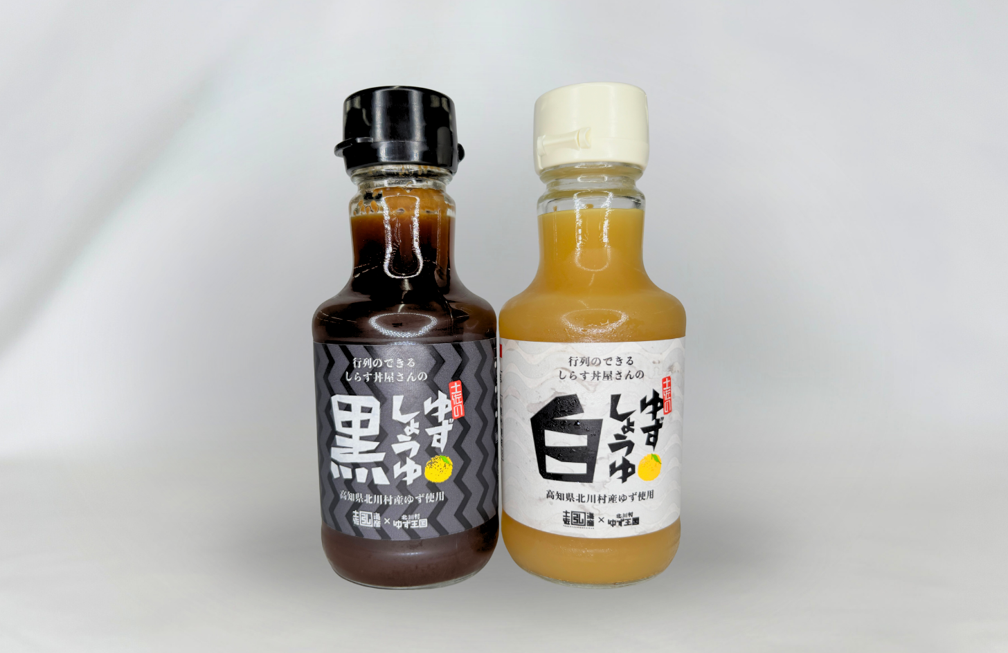 ”行列のできるしらす屋さんのゆず醤油(白・黒)” は、お客さまがしらす丼に醤油をかけた後、さっと柚子果汁をかける光景を目にしたことから開発がスタートしたという。