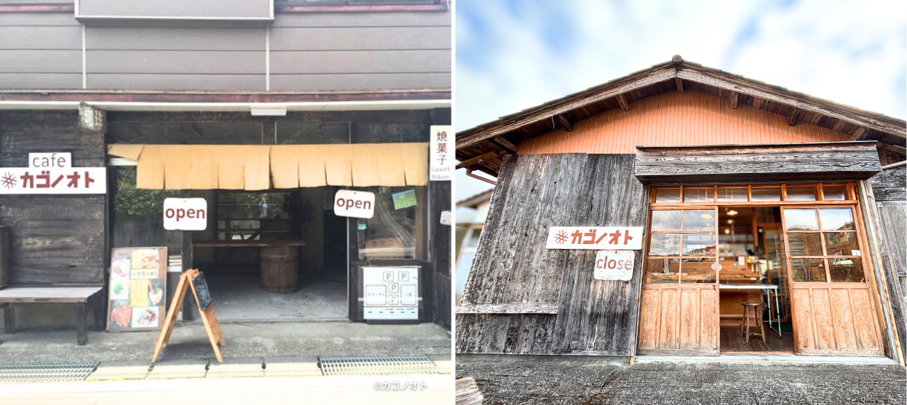 (左)オープン時のカフェ カゴノオト、(右)現在のカゴノオト