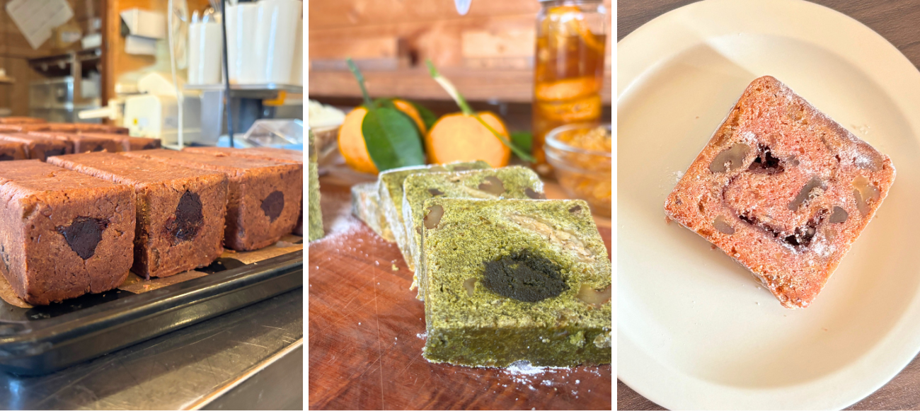 シュトーレンに用いるフルーツや野菜は、四万十町や周辺地域で出会った生産者のものを使い、小麦粉は北海道産の“春よ恋”と、佐賀県産の“内麦香梅”を使用している。小麦の風味が際立ち、豊かな味わいを生み出すそうだ。