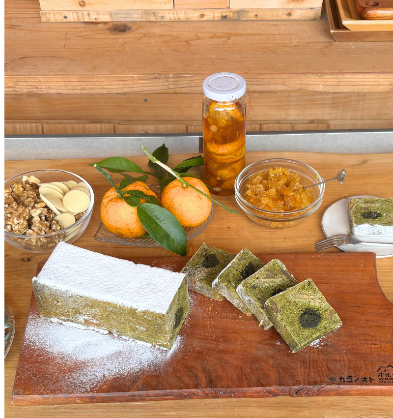 四万十町での暮らしに慣れるにつれ、教わったとおりに仕事をするだけでなく、自分たちで “作る”事業をしたいと思うようになった。そこで、四万十町の素材を使用した料理を作り、マルシェなどのイベントで販売するようになった。そして2012年の12月に、料理を提供しながら焼き菓子なども販売するカフェ“カゴノオト”をオープンした。