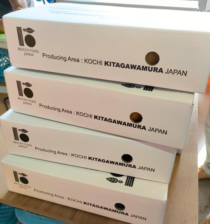 ゆず果汁などの加工品を出荷している産地は他にもあるが、加工せず生の果実 “ゆずたま”(未加工の生の果実) を欧州向けに出荷しているのは高知県でも北川村だけだという。